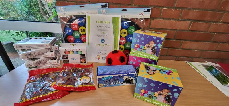 | Die Eltern der Grundschule Veerßen haben in der Kategorie "bestes Team" beim Stadtradeln 2025 den 1. Platz belegt. Herzlichen Glückwunsch! Als Preis gibt es verschiedene Spielsachen für die Kinder, wie z.B. Seile, Gummitwist oder einen Ball. Zusätzlich gibt es Backmischungen für Brownies. Die Eltern spendieren die gewonnenen Sachen an die Schule, vielen Dank dafür! Text: V. Bergholz | ![]() | |